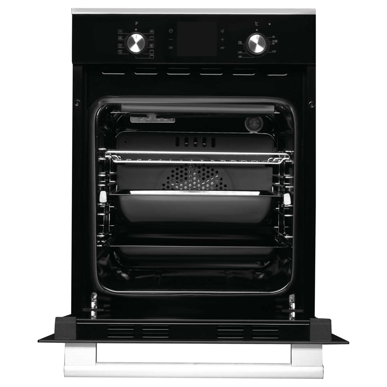 В вашем распоряжении 9 режимов нагрева, включая большой гриль, турбогриль, конвекцию и традиционный нагрев. Управление реализовано с помощью удобных утапливаемых поворотных регуляторов и современного LED-дисплея белого цвета с функцией отложенного старта.