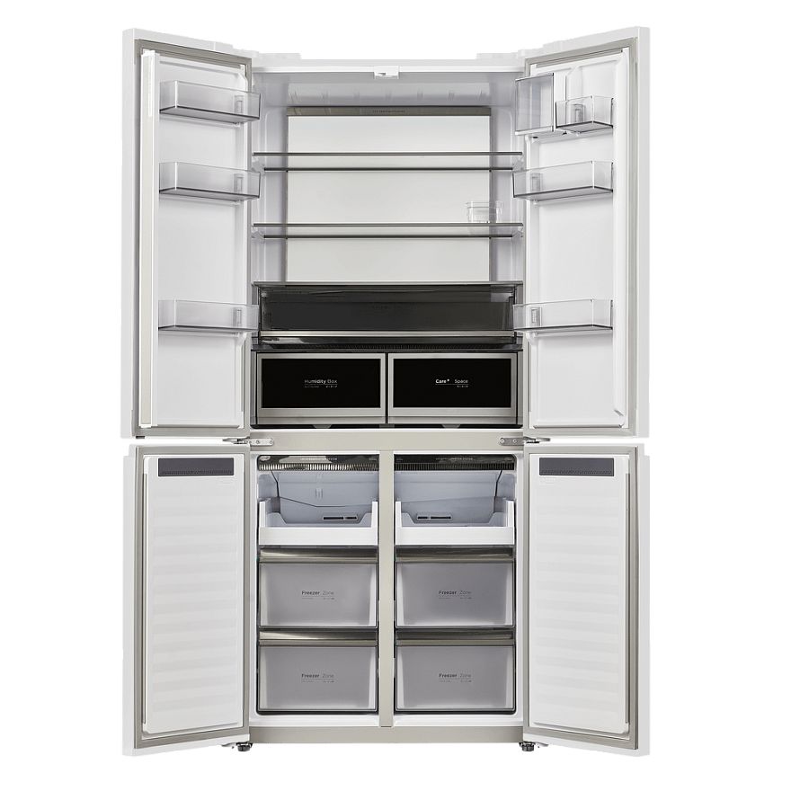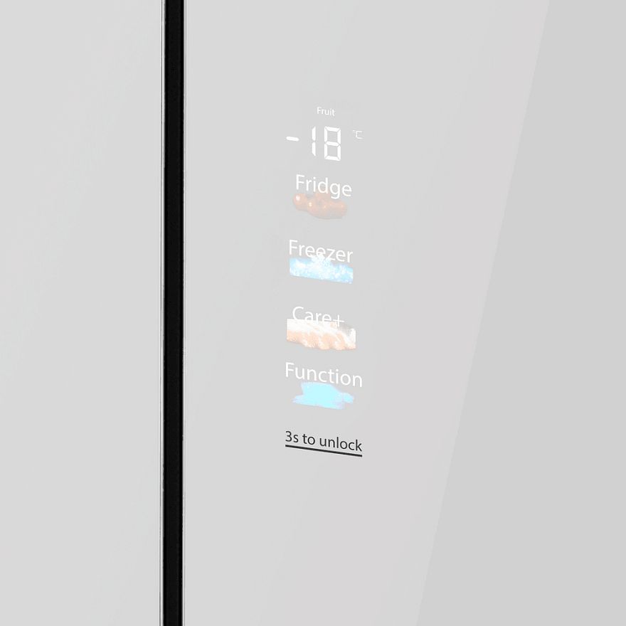 Холодильник оснащен инверторным компрессором, что обеспечивает более тихую и долговечную работу прибора. Система NoFrost в холодильном и морозильном отделениях предотвращает образование инея и льда, что значительно облегчает уход за прибором. Также в холодильнике есть функция быстрой заморозки, что позволяет сохранить полезные свойства продуктов. Управление холодильником осуществляется с помощью сенсорных переключателей и электронного дисплея. Это позволяет точно регулировать и контролировать температуру в отделениях. Звуковая индикация открытой двери и световая сигнализация о повышении температуры в морозильном отделении помогут избежать нежелательного прогрева продуктов. Для безопасности детей предусмотрена блокировка от случайного нажатия.