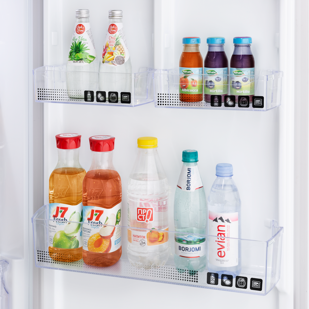 Безопасность и контроль обеспечивают блокировка панели управления и индикатор открытой двери. Возможность перенавешивания двери упрощает установку, а LED-подсветка делает содержимое камер хорошо видимым по всей высоте.