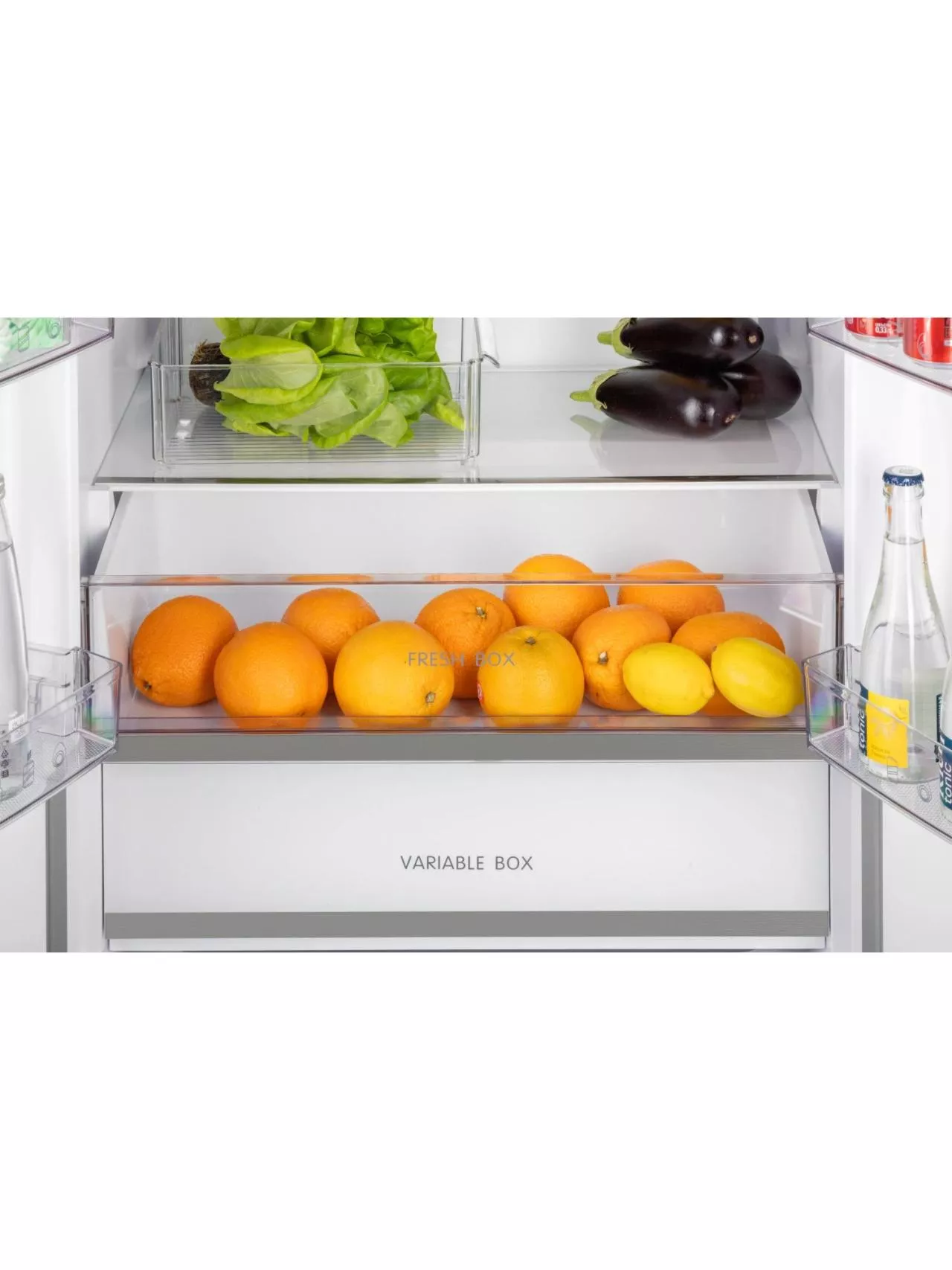 Глубина холодильника 60 см позволяет свободно встроить его в кухонный гарнитур. При этом необходимо обеспечить всего 6 мм минимального расстояния от техники до кухонных шкафов. В модели предусмотрена система нижнего отвода тепла, за счет которой стенки соседних шкафов не будут нагреваться. Благодаря обновленной дверной конструкции и специальным петлям двери холодильника открываются на 90 градусов, обеспечивая удобный доступ к продуктам.