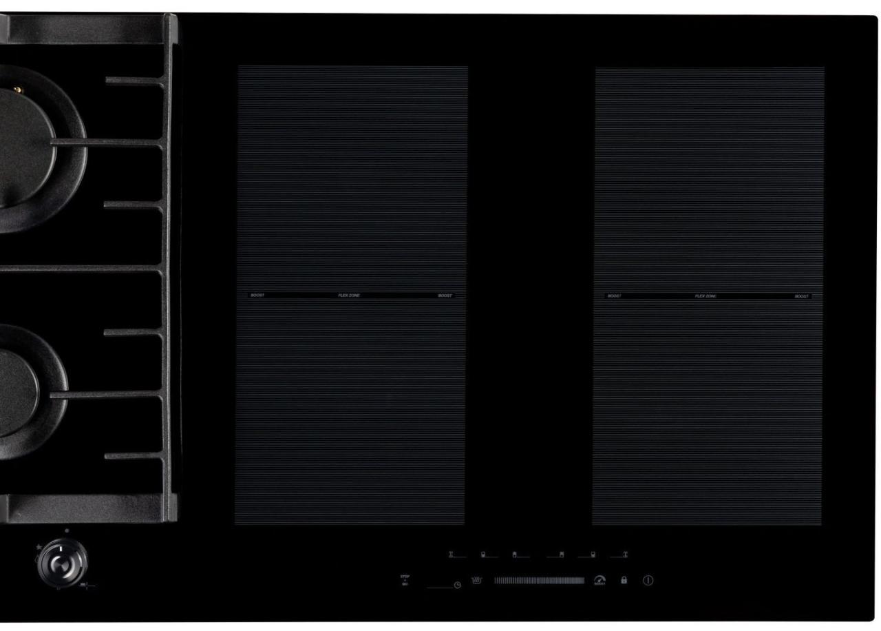 Для интенсивной и быстрой готовки предусмотрены четыре индукционные зоны с возможностью объединения зон для посуды большого диаметра. Режим BOOST ускоряет нагрев, что удобно для кипячения воды и быстрого старта. Сенсорное слайдер-управление, таймер и функции паузы и подогрева помогают точно контролировать процесс.