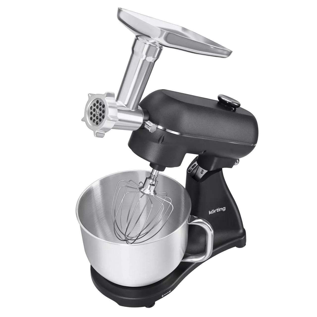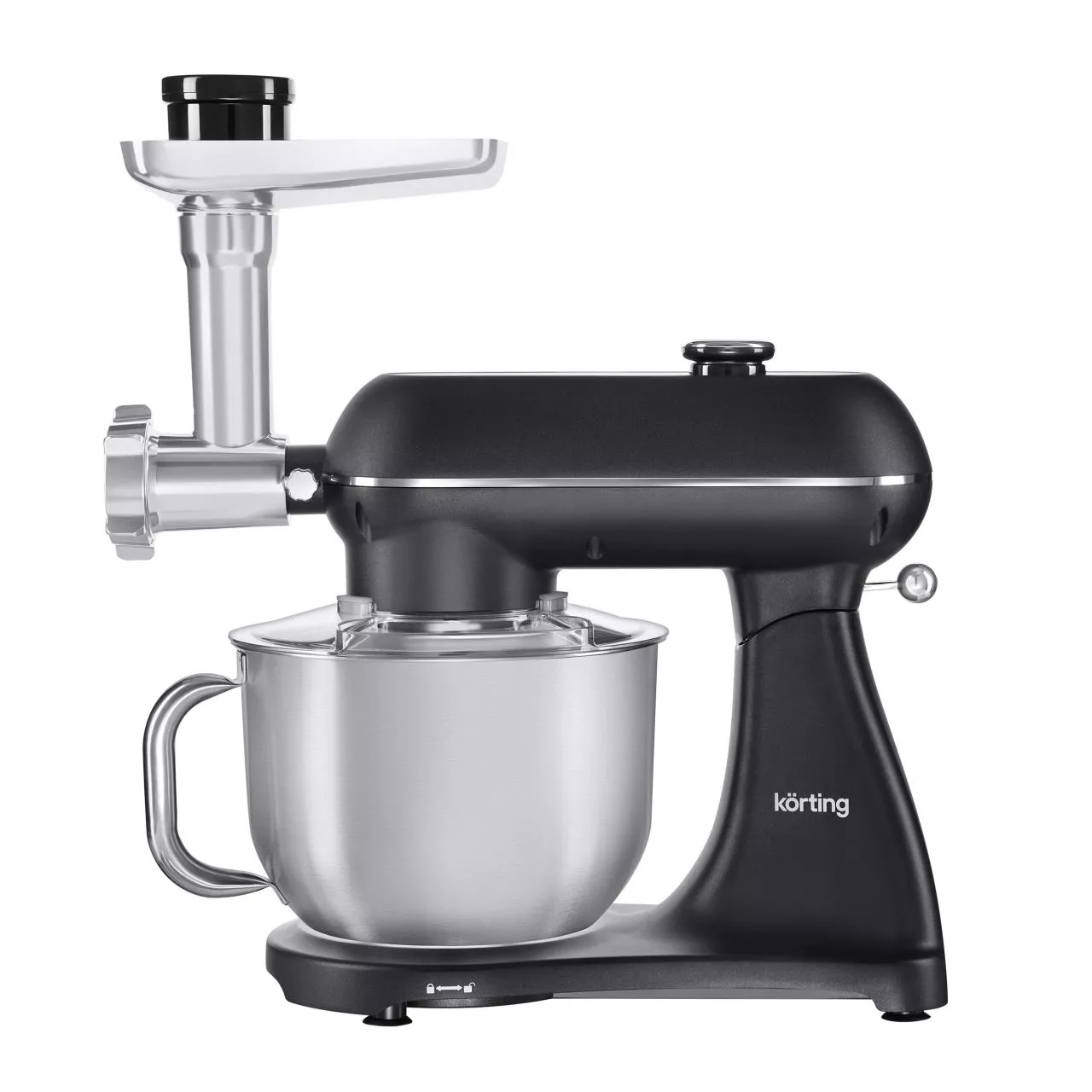Кухонная машина KORTING KKM 0107 MB N представляет собой многофункциональное устройство. Выполненная в строгом черном цвете, она станет не только надежным помощником на кухне, но и стильным акцентом в интерьере. Оснащенная современным цифровым дисплеем, машина показывает текущую скорость работы и время, что делает ее эксплуатацию более удобной. В набор входят пять различных насадок, которые позволяют выполнять разнообразные кулинарные задачи, а одиннадцать скоростных режимов помогут идеально настроить работу в каждом конкретном случае. Процесс смешивания, взбивания и замешивания теста происходит в большой чаше из нержавеющей стали объемом 6,5 л. Благодаря планетарному вращению насадок достигается высокоэффективное перемешивание всех ингредиентов. В комплекте с мясорубкой идут два диска из нержавеющей стали (5 и 7 мм), которые упростят приготовление фарша, кеббе или колбасы. Интуитивно понятное управление кухонной машины Кертинг делает настройку скорости и выбор необходимых режимов простым и удобным. Двойная защита двигателя обеспечивает предотвращение от перегрева и перегрузки, а прорезиненные нескользящие ножки гарантируют устойчивость на любых поверхностях.