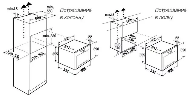 Размеры ниши для встраивания (В×Ш×Г): 37–38 × 56.8 × 32 см